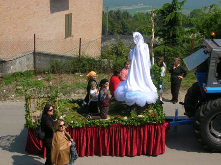 La Fam. Zappitelli, con questo carro che rappresenta il momento della prima apparizione della Madonna ai tre pastorelli, avvenuta a Fatima il 13 maggio 1917, vuole rievocare il messaggio trasmesso in quel giorno: