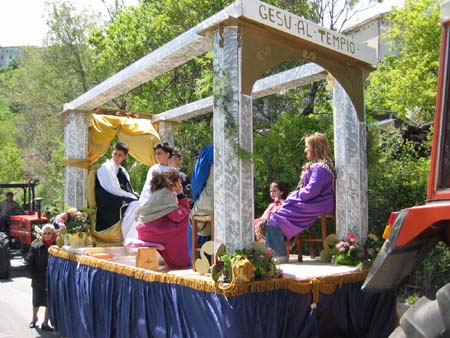 La famiglia Albano Giovanni ha preparato il carro n. 5 che ci fa rivivere un momento della vita di Gesù che, quando ebbe compiuto dodici anni, andò con i genitori nella città santa di Gerusalemme in occasione della Pasqua. Ma non ripartì con loro.
